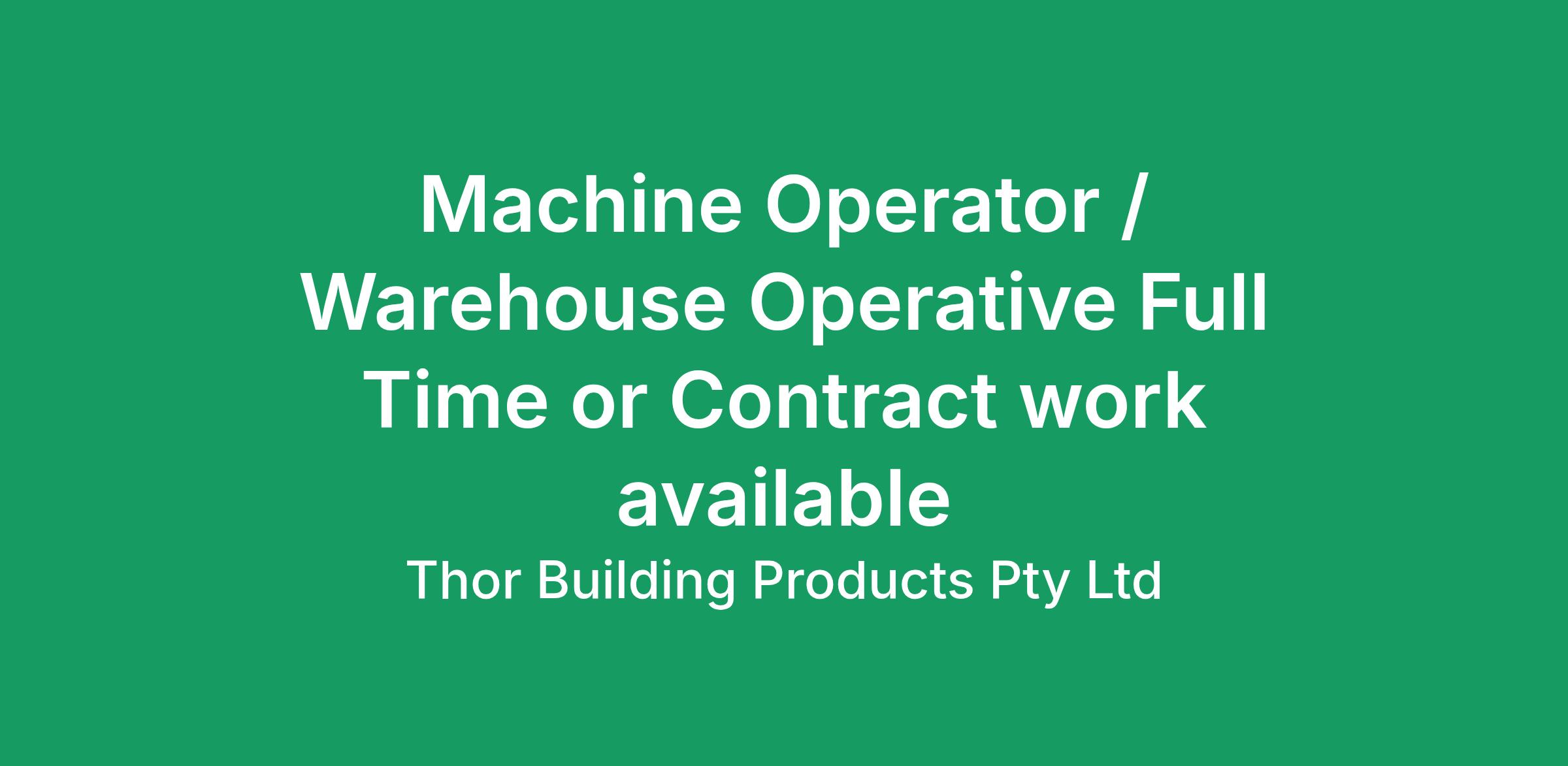 Join a respected name in the building products industry and become a key member of a dynamic, growing team. Thor Building Products Pty Ltd, part of an internationally recognised group, is seeking a motivated Production Operator to support operations at our Northgate facility.
