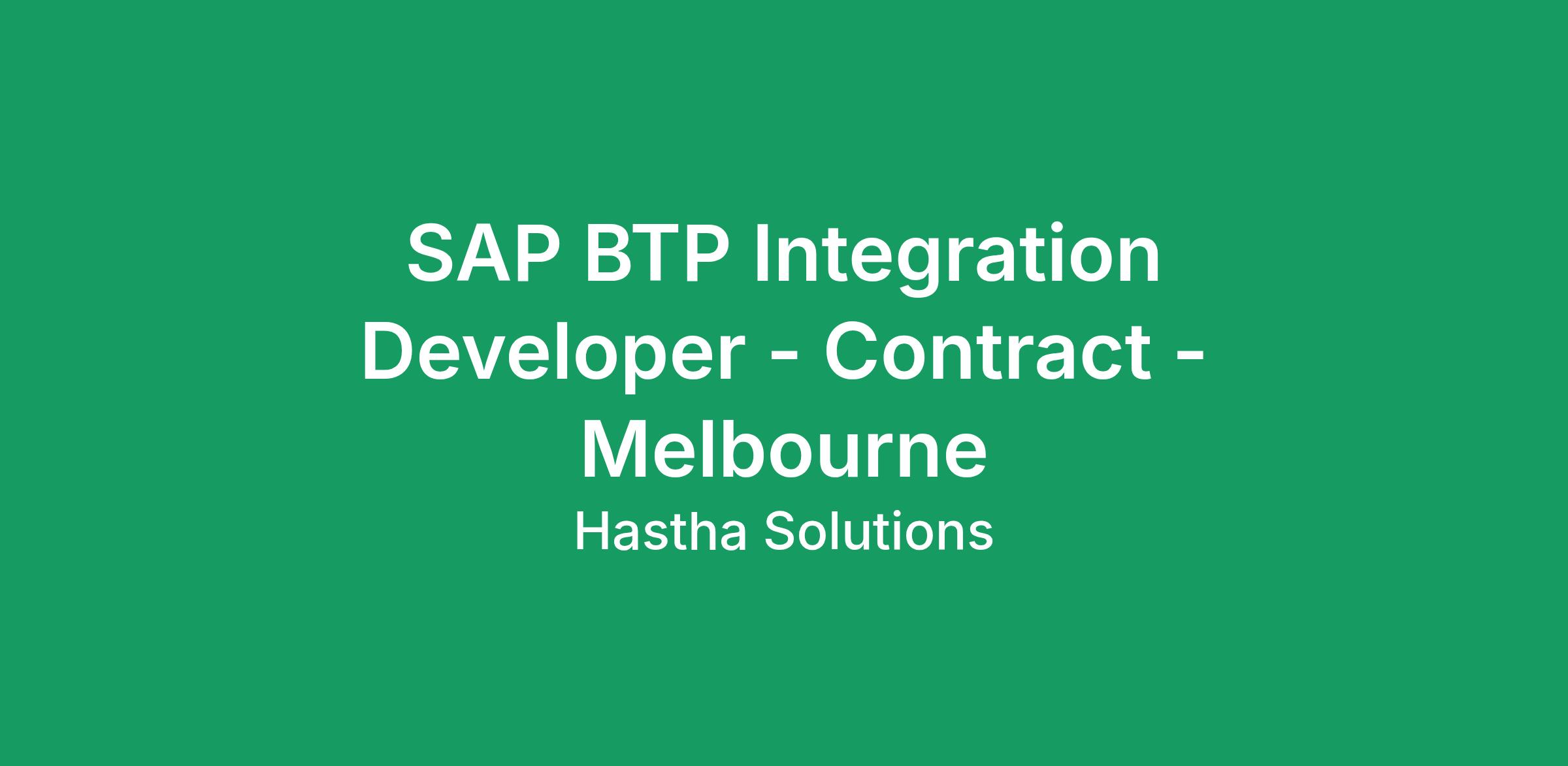 SAP BTP Integration Developer - Contract - Melbourne